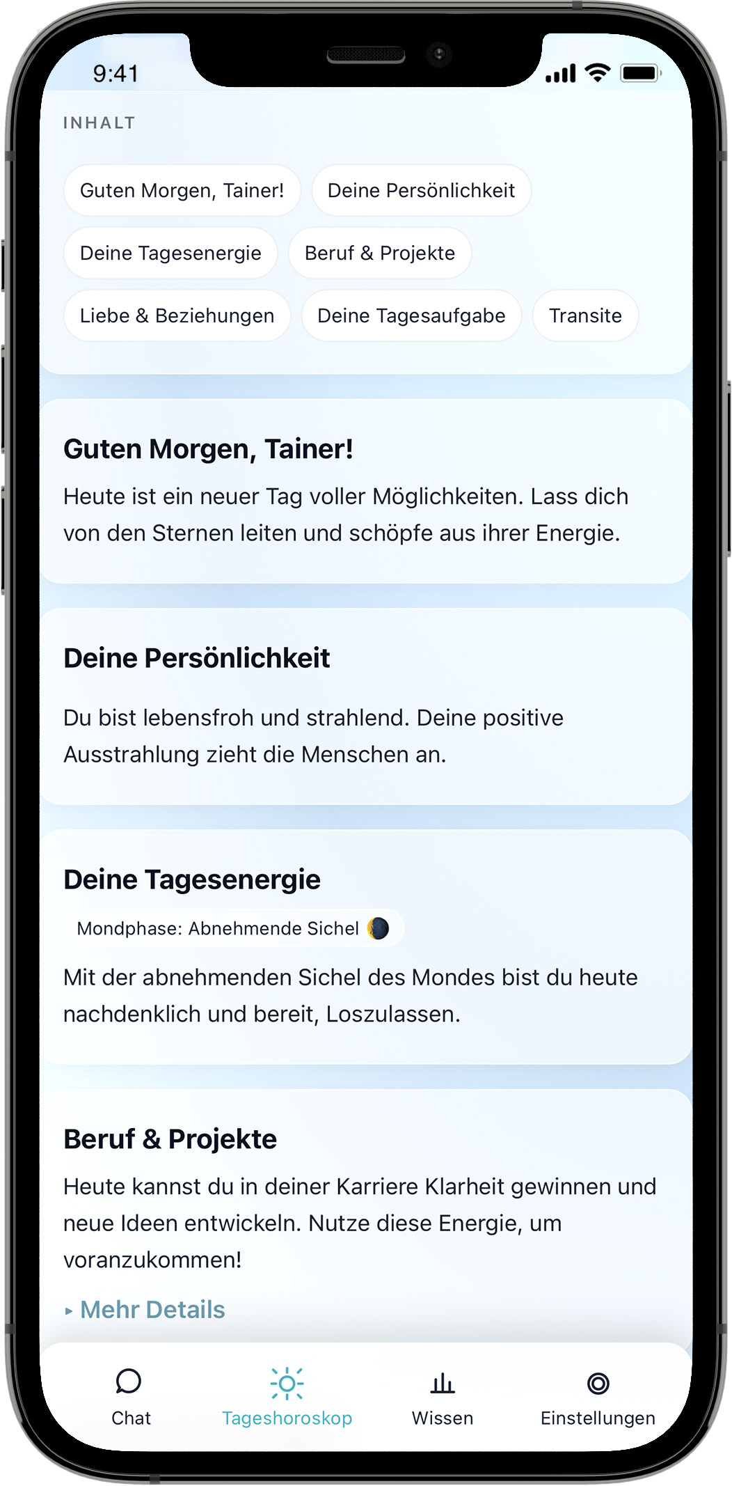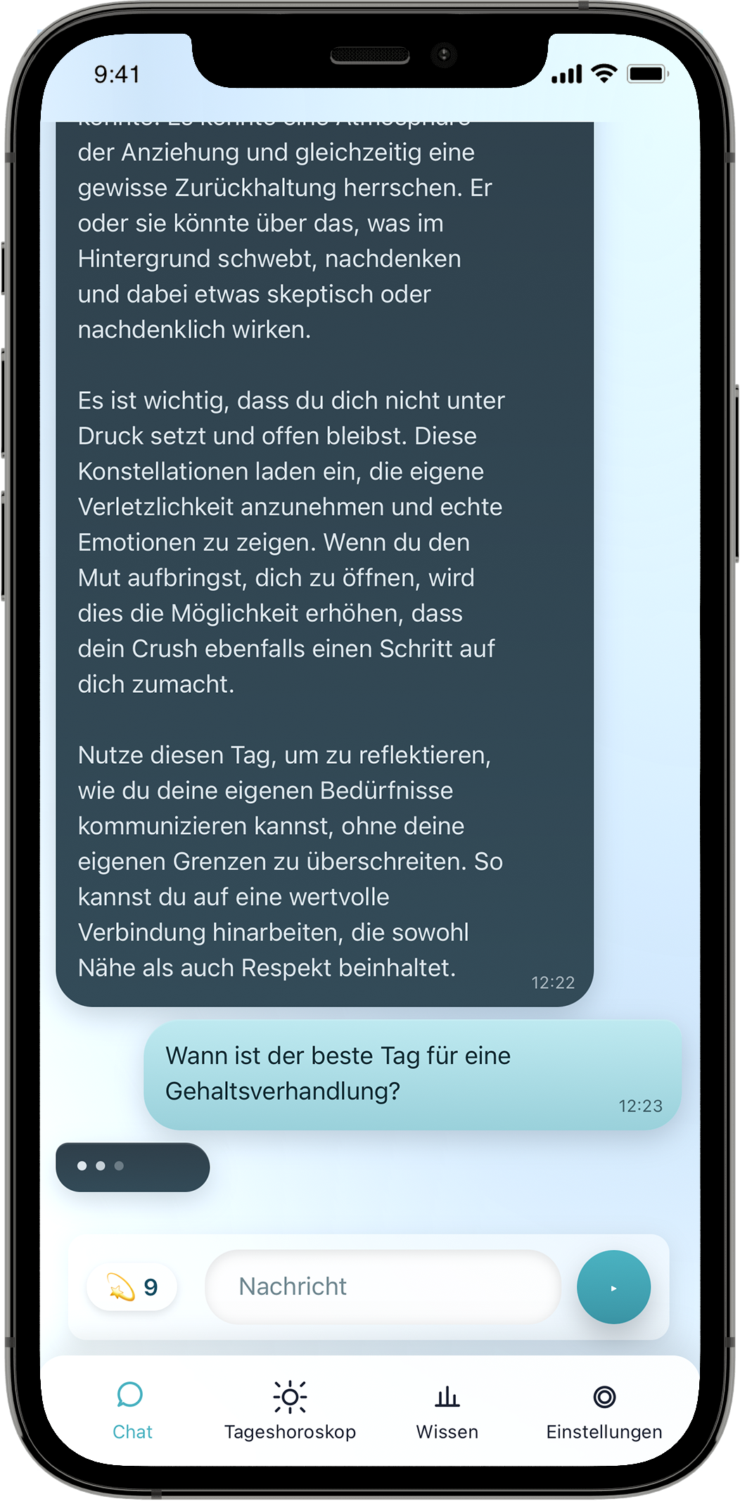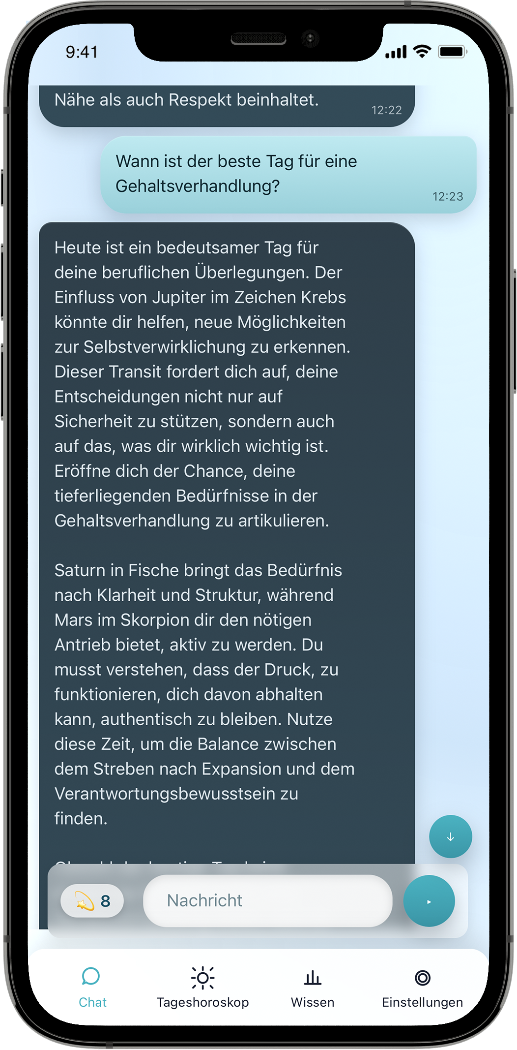 Der Chat fühlt sich an, als würde man wirklich mit einem erfahrenen Astrologen sprechen – nur dass er mich immer kennt.